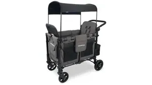 Elite Double Wagon will be your best companion. This baby sits up to two kiddos and leaves ample space for all of your things: diaper bags, shopping bags, snacks, toys, etc. The W2 Elite comes with a removable rear basket that is perfect for holding all your essentials. For those days outside, we have an adjustable canopy that can be moved up and down and side to side based on your preference. Kids will love the front zippered entrance to crawl into the wagon. The all-terrain wheels, one-step foot brake and pull strap is perfect for those rough terrains for hikes or sandy beaches. This wagon also has a deep carriage with mesh sides to add some ventilation. Oh, and we love that roll out wind/privacy shade for ultimate protection. Your kids are gonna love the raised seats. They are removable and reclinable! With our 5-point harness, you can ensure a safe, secure ride for the kids. Trust us, your kids will be riding in style.