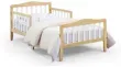 The Twain Toddler Bed sets the stage and puts the fun in functionality. Twain meaning "two", this toddler bed features two-tone, contemporary, fun finishes. With a low profile in size, your toddler will feel confident and independent as they safely climb in and out like a big kid. With solid wood construction and two safety side rails, the Twain toddler bed is the perfect transition from their crib to their big kid bed.