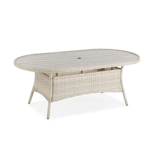 The Samoa collection uses unique materials ideal for the outdoors, with an eye-catching design and robust materials. It's made from light and sturdy rust-free aluminum frames combined with extruded and fully recyclable PVC free Petan fibers. Petan is an environmentally friendly, PVC free, durable, and weather resistant wicker that has a natural color and feel. The tables tops are made from sustainable FSC Duraboard, a unique blend of high quality recycled eucalyptus sawdust and polyethylene resin, extruded to create a strong, durable structure.