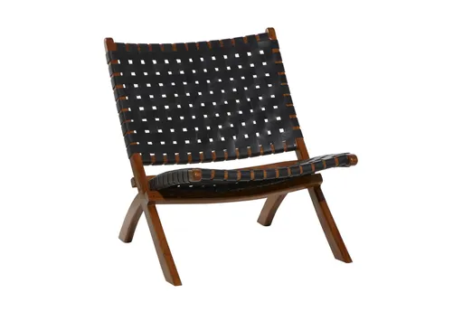 Kick back and relax as you wine down from a long hard day at work. A comfortable and chic way to elevate the look of your home. A perfect complement to any home with a rustic theme.. This item ships in 1 carton. Suitable for indoor use only. This item ships fully assembled in one piece. Leather and hair on hide are natural products, and therefore no two will be alike. There may slight variations in pattern, natural blemishes, colors, and overall aesthetic of the product. Maximum weight limit is 250 lbs. Made in Indonesia. Can accommodate 1 person. This is a single black colored foldable chair. Contemporary style.