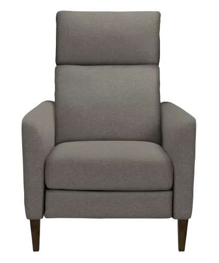 Our Wynton recliner has a soft sink-in seat and a semi-attached back and head pillow that encourage lounging. Its clean silhouette and tall legs give it a light presence, offering you all the comfort of a recliner in a sleek look. Push back on the chair to smoothly recline and extend the footrest.