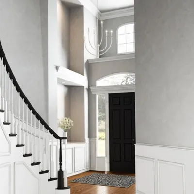This collection has a modern design with smooth rotatable arcs that are staggered for a subtle organic look.
