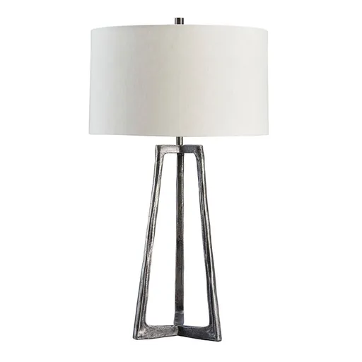 Made of cast aluminum with drum hardback fabric shadeAntiqued pewter-tone finish3-way switch1 E26 socket, type A bulb (not included); 150 watts max or CFL 25 watts max; UL ListedAssembly required