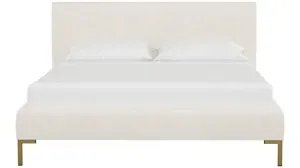 Comfy and stylish, the Malin upholstered platform bed adds a welcoming feel to your bedroom. Featuring metal legs, a sturdy headboard, and fully upholstered rails, this bed creates a cozy feel for you to jump right in. Fresh upholstery options invite you to give your master suite a bold splash of color.