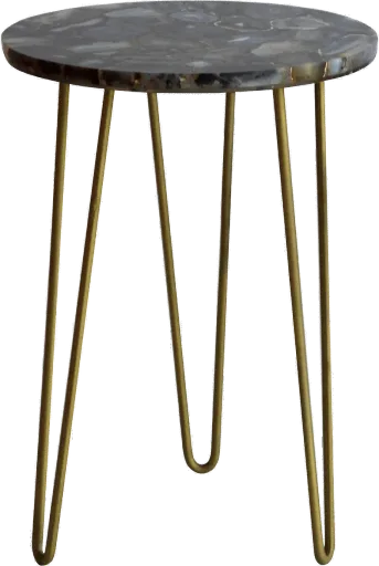 Round in shape, this accent table from RC Willey will add a modern appeal to your home. The blue agate top is a beautiful embellishment to the gold legs. This stylish table will complement any room in your home.