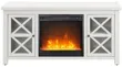 Functionality and on-trend design combine in this sturdy Eve TV stand with crystal fireplace insert. Its rich wood tone creates a warm neutral palette that will blend seamlessly into any color scheme, while its crisscross-accented cabinet doors add a touch of modern farmhouse whimsy. Stay warm and cozy while you take in the big game, a movie marathon, or that season finale everyone's been talking about.