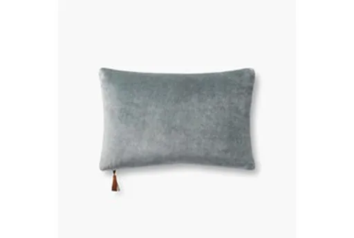 13X21 Magnolia Home Denim + Tan Cotton Velvet Lumbar Pillow With Tassel By Joanna Gaines x Loloi | Machine Washable | Furnzy.com - Shop local furniture stores in one place