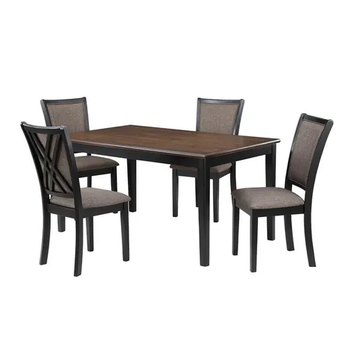 The Potomac 5 pc Counter Height Dinette from New Classic Furniture will make a great addition to your dining room. It features tapered legs, upholstered cushions and comes in a black & brown finish.