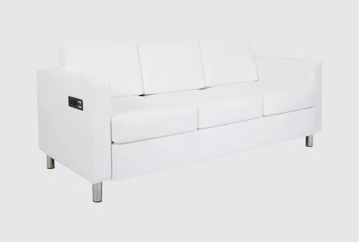 The Atlantic Dillon White Snow Faux Leather 73" Sofa with USB & Outlets combines modern style with practical functionality. Its sleek snow-colored faux leather upholstery offers a sophisticated look, while the firm comfort level ensures lasting support. This sofa is perfect for contemporary living spaces, providing both elegance and convenience.