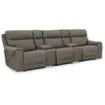 Includes 5 pieces: left-arm facing power recliner, 2 consoles with storage, power armless recliner and right-arm facing power recliner One-touch power control with adjustable positions, Easy View™ adjustable headrest and zero-draw USB port Zero-draw technology only consumes power when the USB receptacle is in use Zero-gravity mechanism (raises the ottoman to improve circulation) Corner-blocked frame with metal reinforced seat Attached cushions High-resiliency foam cushions wrapped in poly fiber Console with 2 cup holders and hidden storage Faux leather upholstery Pop-out cup holders Zero wall recliner design requires minimal space between wall and chair back; extended ottoman for enhanced comfort Power cord included; UL Listed