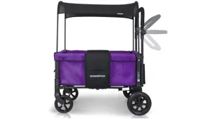 Original Double Wagon for all of your adventures. Your kids are going to love the raised seats. They are removable and reclinable! With our 5-point harness, you can ensure a safe, secure ride for the kids. Trust us, your kids will be riding in style. For those days outside, we have an adjustable canopy that can be moved up and down and side to side based on your preference. Kids will love the front zippered entrance to crawl into the wagon. The all-terrain wheels, one-step foot brake and pull strap is perfect for those rough terrains for hikes or sandy beaches. This wagon also has a deep carriage with mesh sides to add some ventilation. Oh, and we love that roll out wind/privacy shade for ultimate protection.