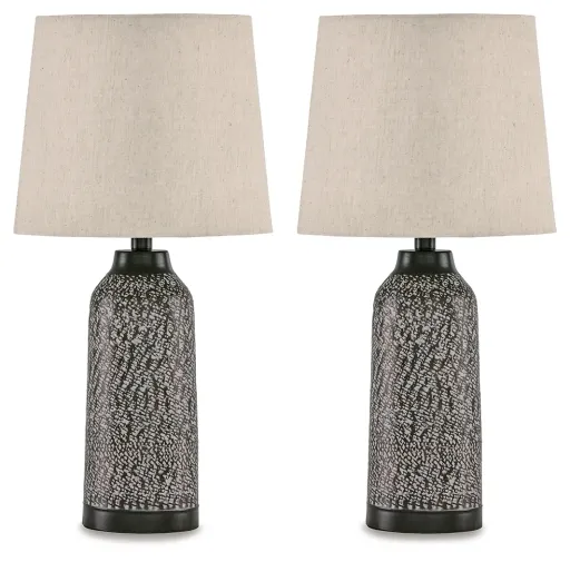 With a handsome hammered metal motif and bronze-tone finish, this set of table lamps is perfect for the modern home. Designed with a simple and iconic body style, their understated touches add personality to any sofa table or console.