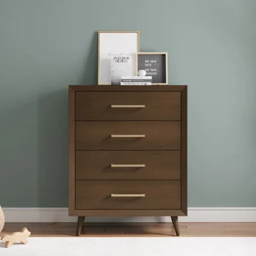 Bring a Mid Century Modern feel to your baby’s nursery with the Cranbrook 4 Drawer Chest. This contemporary 4-drawer nursery chest features mitered corners. The turned legs and rounded spindles add to the modern simplicity. 3 sophisticated finishes highlight the chest's unique features. Pair with coordinating pieces from the Child Craft Cranbrook nursery furniture collection to complete your child’s bedroom. Available for Online Purchase Only. Assembly required. This product ships direct from the manufacturer, so RC Willey Delivery is not available.