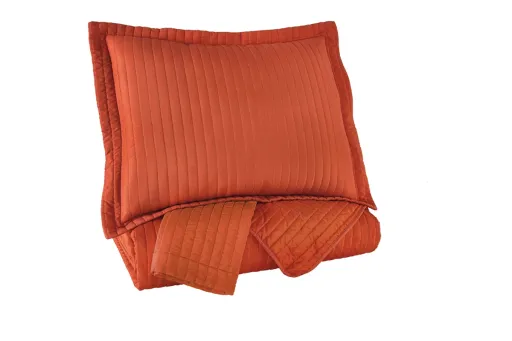 The rich, warm orange hues in this Raleda Coverlet in Orange, Queen are an updated take on a retro color. It brings to mind rustic colors like pumkin and rust, without looking dated. The fabric is cuddly, soft and touchable. This coverlet fits a queen matress beauitfully. Update your bedroom with this reimagined retro tone today. Product Details: • Gorgeous orange color • Soft, snuggly fabric • Fits a queen mattress