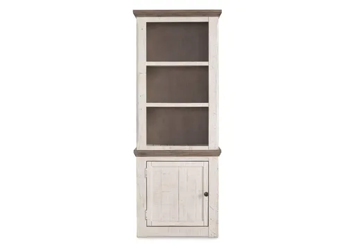 Set your sights on modern farmhouse style with the Havalance pier cabinet. Its distressed two-tone treatment blends a weathered gray with vintage white for an utterly charming effect. Turned posts lend a hearty, substantial look that feels right at home, while three open shelves and a cabinet suit all your storage needs.