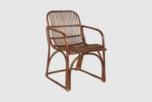 The Hattie Brown Stained Rattan Frame And Sled Base Side Chair is a perfect blend of modern style and natural materials. This stylish rattan armchair features a rounded seat and back for ultimate comfort, while the curved arms provide excellent support. Ideal for indoor residential use, it adds a touch of earthy modern elegance to any space.