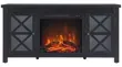Combine functionality and on-trend design with this sturdy Eve TV stand with log fireplace insert, featuring an inset electric fireplace. Its rich tones create a warm neutral palette that will blend seamlessly into any color scheme, while its crisscross-accented cabinet doors add a touch of modern farmhouse whimsy. Stay warm and cozy while you take in the big game, a movie marathon, or that season finale everyones been talking about.