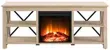 Strong geometric lines and an inset electric fireplace set this modern farmhouse-inspired Curlew TV stand with log fireplace insert apart. Its X-shaped black metal accents offset the rich wood tone, creating a warm neutral color palette that will blend seamlessly into any design scheme. Stay warm and cozy while you take in the big game, a movie marathon, or that season finale everyone's been talking about.