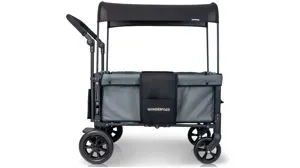 Original Double Wagon for all of your adventures. Your kids are going to love the raised seats. They are removable and reclinable! With our 5-point harness, you can ensure a safe, secure ride for the kids. Trust us, your kids will be riding in style. For those days outside, we have an adjustable canopy that can be moved up and down and side to side based on your preference. Kids will love the front zippered entrance to crawl into the wagon. The all-terrain wheels, one-step foot brake and pull strap is perfect for those rough terrains for hikes or sandy beaches. This wagon also has a deep carriage with mesh sides to add some ventilation. Oh, and we love that roll out wind/privacy shade for ultimate protection.