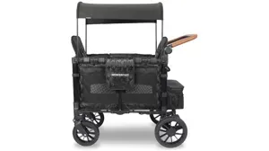 Lux Premium Double Wagon is made to look and feel easy. These wagons can sit up to two children and leave ample space for all your belongings. No need to carry all of your bags and push a stroller. Your hands and back will thank you. The kids will love their comfy raised seats that are reclinable for those afternoon naps and even removable for added space. For even more space, we have a removable rear basket for all of your essentials. They will be secure with our 5-point magnetic safety harness. For those sunny days, our adjustable canopy will come in handy. It is easy to move side to side depending on the time of day and even up and down to accommodate growing children. The vegan leather, adjustable handlebar is perfect for parents of all heights and adds just the right amount of class to your ride.