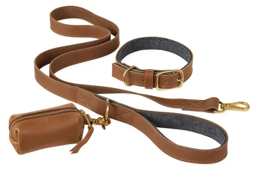 Get everything you need for walking the dog with this set, which includes a leash, collar and waste bag holder. The mix of materials in our Miles collection looks beautiful and provides comfort. Top-grain stitched leather ensures style and durability, walk after walk.