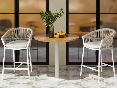 Introducing the Maiden Patio Seating Collection by Jennifer Taylor Home, where comfort meets style in the great outdoors. Each piece features a durable powder-coated aluminum frame and chic barrel back design, offering both durability and aesthetic appeal. Sink into relaxation with the cushioned seat, upholstered in high-quality outdoor UV and waterproof fabric, ensuring lasting comfort and easy maintenance. The intricate rope weaving adds a touch of sophistication to any outdoor space, available in an array of fun and neutral colors to suit your style.