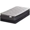 Pillow top comfortRuby WavesTwin Mattress with Low Profile FoundationQuilted Pattern TopCoil Count - Twin 264, Full 384Queen 468, King 598Verticoil2" Comfort Foam1 1/2" Plush Convolute Quilt FoamNo Flip DesignFoam encased edge supportFR FiberGreat for bunk beds5 Year Limited Warranty