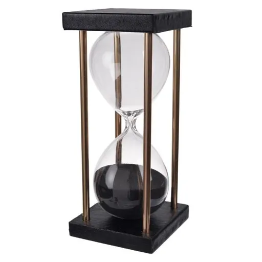 Display this hourglass on an entryway table, office desk, living room end table, or employ it in the kitchen when cooking and baking.15-Minute Hourglass.Black sand.Quantities may vary by location.