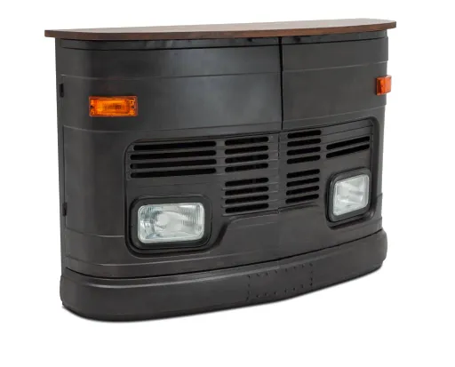 If you’ve ever wanted an exotic, eye-catching accent piece to finish a room in unforgettable style, then you’ve got to check out the beautiful Gas Guzzler Bar. Made with the front end of an actual Indian Tata Bus, this one-of-a-kind bar delivers the authentic character of metropolitain India, but it’s more than just a simple statement piece, it’s also a fully-functional bar! The Gas Guzzler’s top is made from solid mango wood in an antique brown finish, and its front opens to reveal a roomy shelved cabinet space replete with a wine bottle storage unit. Set your home apart with the captivating Gas Guzzler Bar.