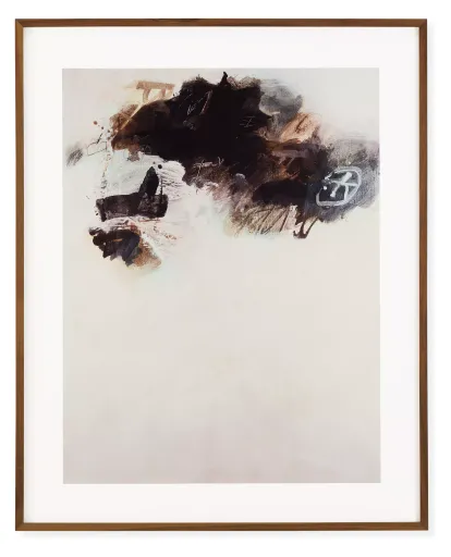 Gabriel Belgeonne, born in 1935, is a Belgian artist known for his work in engraving, lithography, painting and drawing. His interest in the abstract blends with his broad artistic background to form this elusive yet captivating artwork. This piece is set against archival-quality paper enclosed in a solid walnut frame.