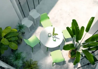 The Chloe Garden table is inspired by nature with its legs sprouting upward to its beautiful rounded top. This bistro table is made of durable polypropylene and can seat up to four people. You will find a pleasant surprise underneath the tabletop - an exquisite floral design. This round table is perfect for any outdoor setting. So gear up for casual cocktails and conversations on the patio with the Chloe table!