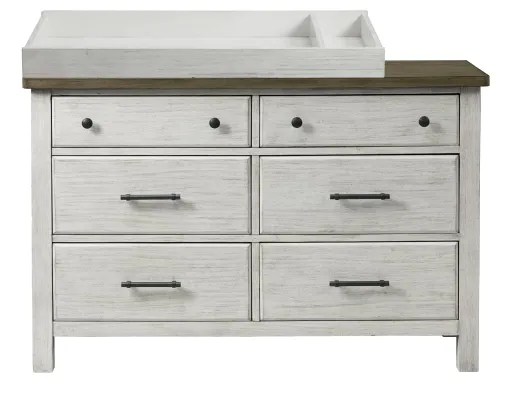The Tristen Collection has a timeless farmhouse style that will keep your child's room simple and sweet. The beautiful two-toned finished case pieces with deep bronze hardware complement the convertible crib with perfection, bringing comfort to your home for years to come.