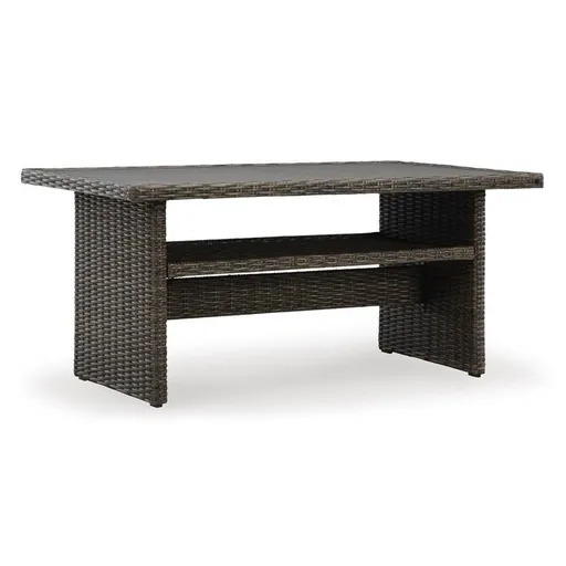 Relax. Refresh. Refine your outdoor oasis. This multi-use table masters high style with beautiful simplicity. A handy shelf for storage, warmly neutral hues and all-weather durability invite everyday use. From chic gatherings with guests to dinner by the pool with the kids, this sleek table makes outdoor living all the more enticing.