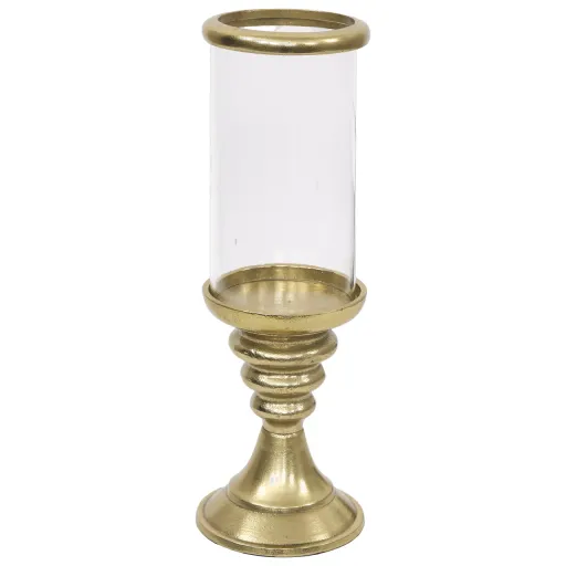 Illuminating your space with a soft candle glow has never looked so chic. Available in 12 and 16-inch sizes, our Linus hurricanes are crafted with glass and metal and accented by a gold finish for a look that always allows your candles to shine. Please select your size before adding to cart.