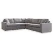 Includes 5 modular pieces: left-arm facing corner chair, 2 armless chairs, wedge and right-arm facing corner chair "Left-arm" and "right-arm" describe the position of the arm when you face the piece Modular pieces can float anywhere; sides are finished (with no connectors) Corner-blocked frame Loose reversible seat and back cushions; high-quality foam cushions wrapped in poly fiber Throw pillows included; soft polyfill Polyester upholstery Next-Gen Nuvella™ is a family-friendly fabric that is soft, easy to clean, stain-resistant and durable Easy-to-remove zippered covers for machine washing Clean fabric with mild soap and water, let air dry; for stubborn stains, use a solution of 4 oz. bleach to 28 oz. water Non-skid legs Platform foundation system resists sagging 3x better than spring system after 20,000 testing cycles by providing more even support Smooth platform foundation maintains tight, wrinkle-free look without dips or sags that can occur over time with sinuous spring foundations