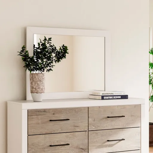Elevate your bedroom decor with the Charbitt Bedroom Mirror. It features a stylish matte white finish. Designed to perfectly complement other items in the series, this mirror is the ideal addition to complete your dresser and mirror kit, adding both functionality and elegance to your space.