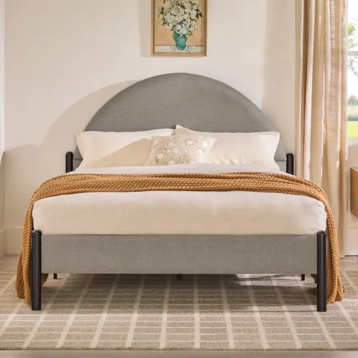 Come sunset or sunrise, this comfy, cozy bed is where you’ll want to be. With its upholstered headboard, footboard, and side rails, every angle of this queen bedframe is designed with comfort in mind. Metal support slats mean no bulky box spring, and a ninety-minute assembly time allows for a straight-forward and easy assembly. The woven fabric is fire resistant to ensure a safe sleep, and the metal frame promises that this bed will last as long as you need it to, whether it’s in your room, guest room, or child’s bedroom. Available for Online Purchase Only. Ships Directly from the Manufacturer. RC Willey Delivery is Not Available. Assembly required.