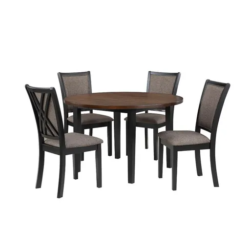 The Potomac 5 pc Counter Height Dinette from New Classic Furniture will make a great addition to your dining room. It features tapered legs, upholstered cushions and comes in a black & brown finish.