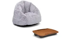 Your child will ace their study sessions with this Cozee Fluffy Chair and Bamboo Lap Desk Set by Delta Children. The chair is stuffed with a shredded foam that contours to your child's body, delivering more comfort and support than traditional bean bag chairs. The perfect chair for reading, playing or snuggling, the plush faux fur cover and supportive back help give kids an oh-so-cozy spot to call their own, and its lightweight design means it can go anywhere your child goes. The lap desk is crafted of sustainable bamboo wood, it has a spacious work surface, a slot to hold a tablet or phone, easy-grab handle and a cushioned base covered in super-soft fabric. Ideal for studying, remote learning, homeschooling or just lounging, it makes any activity comfy.