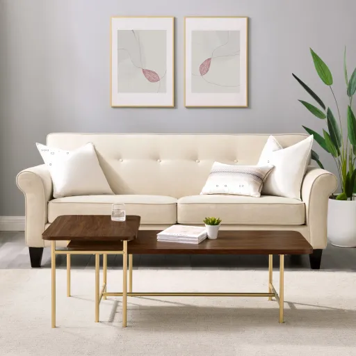 Update your contemporary casa to reflect your minimalist sense of style with this mixed-material, nesting coffee table set. Whether they’re displayed separately or together, these pieces instill an effortless finesse that’ll lend your abode an easy style upgrade and ample surface space for coffee table books or houseplants. Perfect for forever homes and small spaces alike, this set is as versatile as it is stylish. Pair the dynamic shape of this coffee table set with the matching tv stand to curate a cohesive aesthetic throughout your apartment or home. Available for Online Purchase Only. Ships Directly from the Manufacturer. RC Willey Delivery is Not Available. Assembly required.