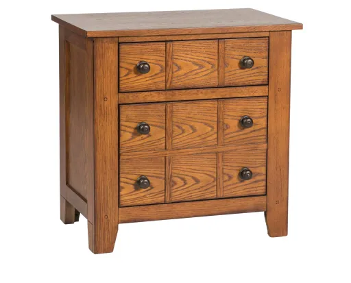 A gorgeous combination of soothing wooden tones and early American, craftsman style, the Choctaw 2 Drawer Nightstand is a bedside accessory piece that’s in a league of its own. This sophisticated nightstand is made from rubberwood with oak veneers in an Aged Oak finish, and it features one small and one large full-extension, French and English dovetail drawer with dust-proofed interiors. To achieve its charming craftsman-inspired silhouette, the Choctaw brings together a clean-lined frame with a simple overhanging top, recessed side panels, and tapered bracket feet; and each of its drawers are topped with timeless antique brass pull knobs and wood peg accents to instill a multi-drawer apothecary look. You’re going to love the Choctaw 2 Drawer Nightstand in your bedroom today.