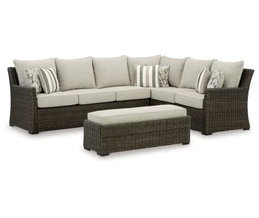 Relax. Refresh. Refine your outdoor oasis. This sofa sectional and bench master high style with beautiful simplicity. Premium high-performance fabric, warmly neutral hues and all-weather durability invite everyday use. From getting sun-kissed in the summer to chilling with cocoa in the winter, their cushioned comfort makes outdoor living all the more enticing.