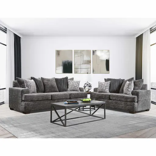 This loveseat is upholstered in a soft, durable fabric that is easy to clean and maintain. It features a comfortable, supportive seat and back, with plush cushions for added comfort. The loveseat is designed with a modern, clean-lined silhouette that will complement any living room decor. It is perfect for small spaces or as an addition to a larger living room set.