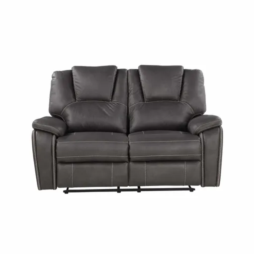 This reclining loveseat features a plush, comfortable design with a grey fabric upholstery. It's perfect for any living room setting, offering a cozy spot to relax and unwind. The reclining mechanism allows for easy adjustment to your preferred position.