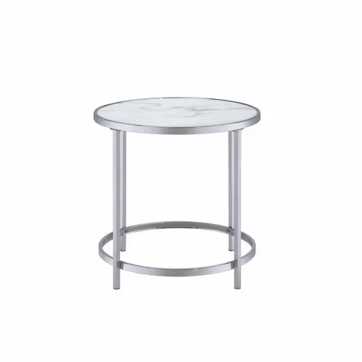 This Rayne White End Table is a stylish and functional addition to any living room. Its clean lines and white finish complement a variety of decor styles. Perfect for holding lamps, books, or decorative items, it offers convenient storage and display space.