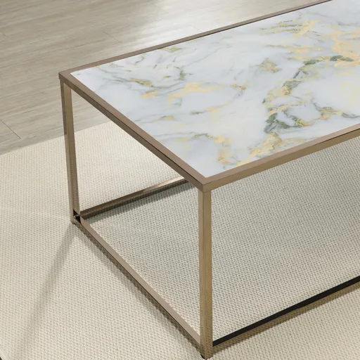 This coffee table is a great addition to any living room. It features a white finish and a modern design. The table is made of engineered wood and has a rectangular shape. It is perfect for holding drinks, snacks, or decorative items. The table is easy to assemble and maintain. Dimensions: 47.24" W x 19.69" D x 15.75" H.