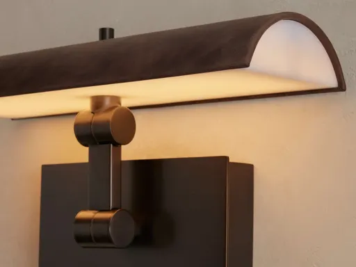 Crafted from steel wrapped in supple leather mounted on a brushed bronze backplate. Features integrated LED lights with a total output of 10W (14" sconce), 15W (24" sconce), or 20W (36" sconce). LED lifespan is 50,000 hours. Abel’s LED color temperature is a warm 2700K. Professional installation recommended.