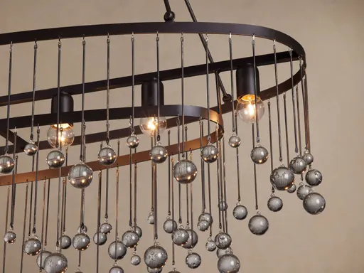 Equally at home in an ancient French castle or a downtown loft, our Aubrey Lighting Collection creates a dramatic centerpiece in any setting. Crafted by Italian artisans from solid iron. Uses seven 60-watt max E26 bulbs (not included). We recommend energy-saving LED bulbs. Adjustable drop length ranges from 31"- 170". Iron chain measures 144” long. Additional chain may be available to purchase by request. Please contact our Concierge Team for details. Hardwired; professional installation recommended. Mounting hardware included. Safety tested for use in bathrooms, covered patios, or areas with temporary humidity and moisture.
