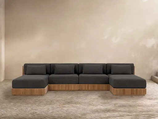 Celebrating the beauty of solid natural teak, our Beaumont Outdoor Collection creates a relaxing retreat with its lumbar pillows, soft curves, and classic reeding detailing. Comfortable, deep cushions nestled within the wraparound frame bring comfort to the modern-meets-graceful look.