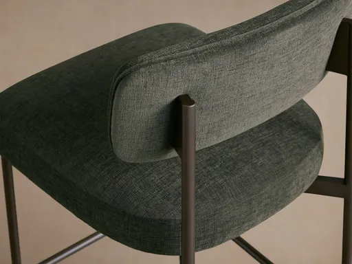 Our sustainably certified Crypton® Cushing Mellow Home Performance Fabric is easy to clean, soft, and durable—engineered with stain-, odor-, and moisture-resistant technology in every fiber. Our Performance Fabrics are extremely durable and resist stains but remain beautiful and soft to the touch. Iron frame and legs are painted in a complementing, antiqued finish.